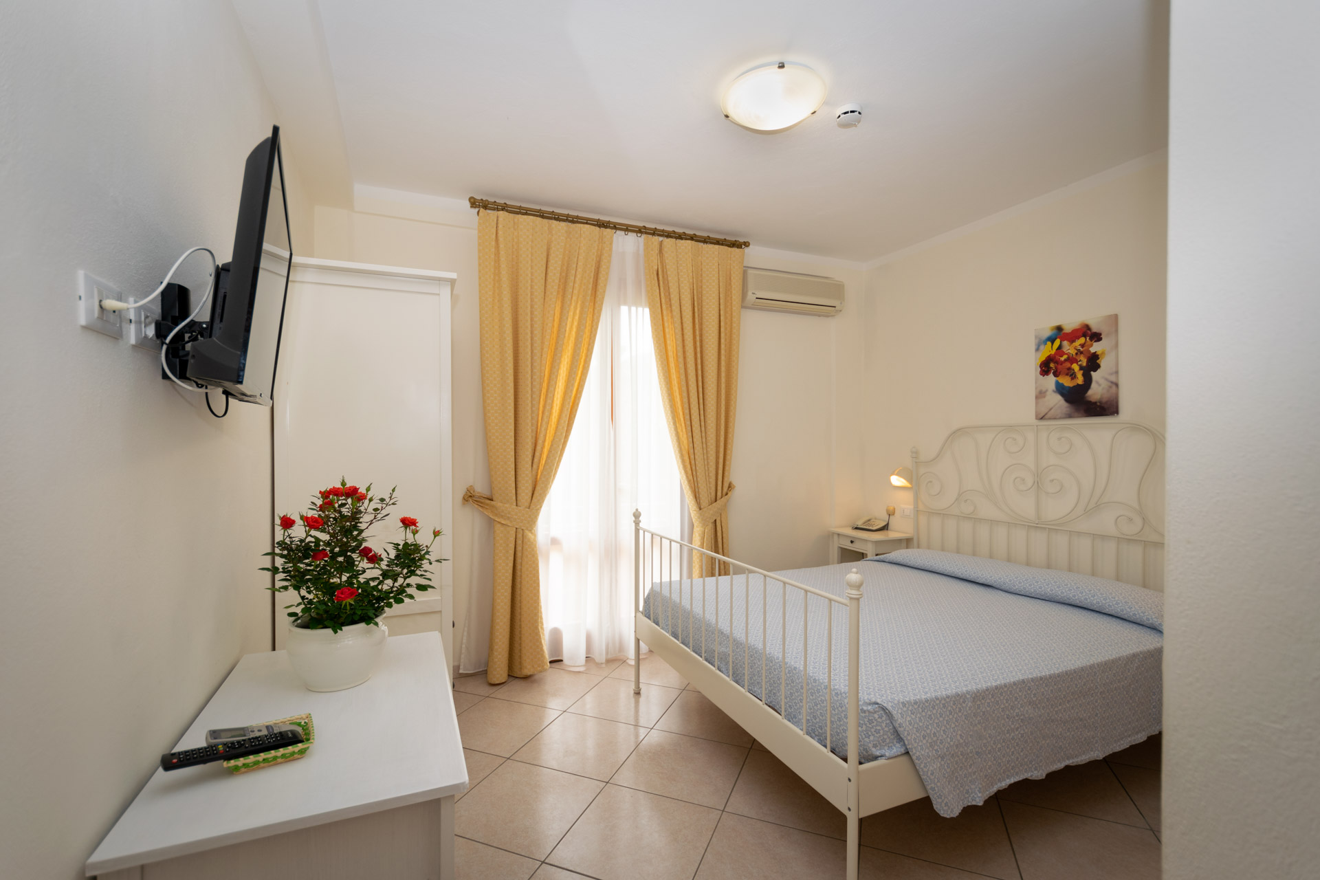 Ampia camera matrimoniale con soffitto più basso con possibilità di terzo letto o culla. La camera dispone di balconcino, bagno privato con doccia, aria condizionata, Wi-Fi, TVC schermo piatto, frigobar, cassaforte e asciugacapelli.